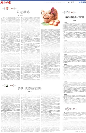 他有点怕。她一回来,他犯罪的青春也回来了,一个紊乱的记忆也回来了。一连几天,他驾着面包车经过井亭医院的小树林,觉得车厢里的菜蔬猪肉都在慌乱地抖动,废弃的水塔里隐约响起了水的回流声,一页翻过去的历史,被风吹回了原处,让他辨认。(苏童《黄雀记》)