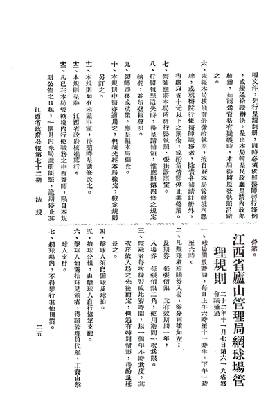 ▲ 1933年,庐山管理局出台网球场管理规则(节选)。