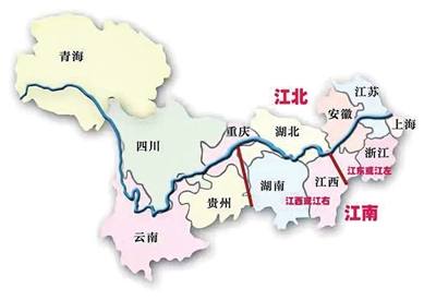 长江走向示意图。