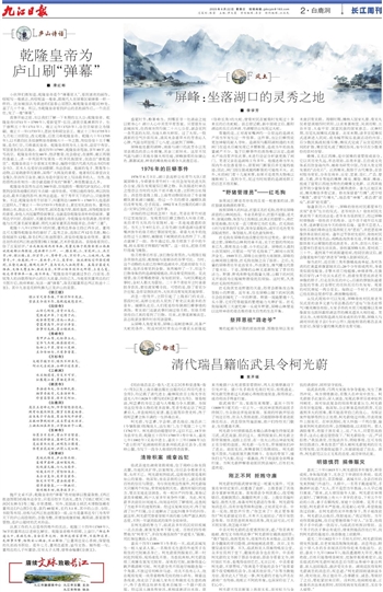 乾隆十八年(1753年)的时候,董邦达奉命主持江西乡试。董邦达可太懂得乾隆皇帝的癖好了,监考之余,选取江西12处名胜,精心绘制画作12幅,取名《西江胜迹图册》,进呈给乾隆皇帝欣赏。董邦达创作的《西江胜迹图册》精工细腻,艺术价值甚高。袁励准看到后,给了五星好评:“壬戌敕校阅内府书画,见董文恪于乾隆癸酉江西典试使旋都江西胜迹,进画册十二叶。一、滕王阁;二、百花洲;三、北兰寺;四、锁江楼;五、归宗寺;六、秀峰寺;七、万杉寺;八、三峡涧;九、栖贤寺;十、白鹿洞;十一、东林寺;十二、吴章岭。按此册较它作弥觉精到,丘壑之幽邃,楼观之壮严,直与宋元人血战得来。盖高宗最爱文恪画,文恪又膺主知,典试名区,不惮以轺车经历之所得,上呈乙览,较之寻常供奉一派,迥不侔矣。”乾隆皇帝早就通过李白、白居易、苏轼等人的诗歌得知庐山的巨大流量,向往已久,当他看到董邦达的打卡图片后,技痒难耐,发送一通“弹幕”,取名《题董邦达西江胜迹十二首》。其中九首是花样吹捧九江及庐山的美景。
