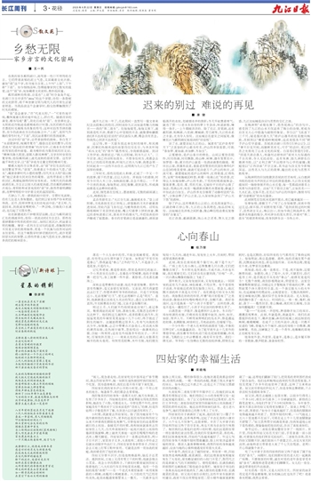还记得,第一天驱车抵达单位时的情形,和风拂面,同事们热情欢迎的场景仍历历在目,与多次听闻“码头文化”的“排外”截然相反,令我顿感温暖。到浔工作伊始,我曾说过:“既入浔阳城,则为九江人”。三年回首,我已待浔阳如故乡。不管身处何方,我都会去讲九江的经历和故事;听闻九江的人与事,我都会第一时间起身——这些不由自主,证明我与九江已经产生了深厚的情感。