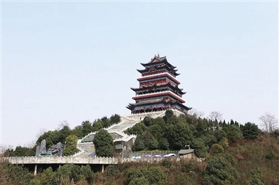 走进南山公园,跨过拱形金水桥,眼前是层层叠叠的台阶,可以通往螺子山上的德化楼。德化楼矗立在公园最高处,俯瞰浔阳大地,见证二千多年江州历史变迁。