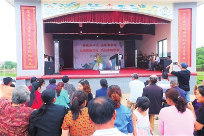 在苏家垱乡水口村与村民一起欣赏西河戏。