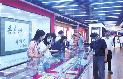 作家、编辑们在认真了解共青的发展史。