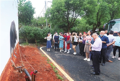 来自各地的作家、编辑在甘露镇新时代文明实践所参观。