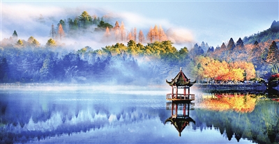 其次,庐山诗文冠天下。我们应将庐山打造成“悠学之山”“悠思之山”,甚至“悠情之山”,让天下人都来共享庐山式的悠生活。正在求学的青少年来庐山研学,应引导他们探寻出庐山地貌风光、人文历史、生活方式中的悠来;正在思虑生命安顿的成年人来庐山悟道,应引导他们转换横岭侧峰的观察角度、提升无限风光的追寻高度、充盈万紫千红的豁然气度,从而顿悟出人生的悠来;至于正在“关雎”的少男少女们来庐山嬉耍,更是要引导他们像南唐中主李璟《浣溪沙》中所说的那样,不论情感的绿波起与伏,都能穿透庐山云雾而“接天流”,像电影《庐山恋》周筠、耿桦那样,也来一个牵肠挂肚的“思悠悠”。