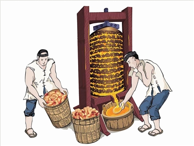 随着科技进步,现在的榨油铺大多是用机械生产,既省时省力,出油率也更高。传统的木榨、油磨早已光荣退役了,而那老榨油铺却深深地留在我年少的记忆里,成为浓郁醇香的乡愁。